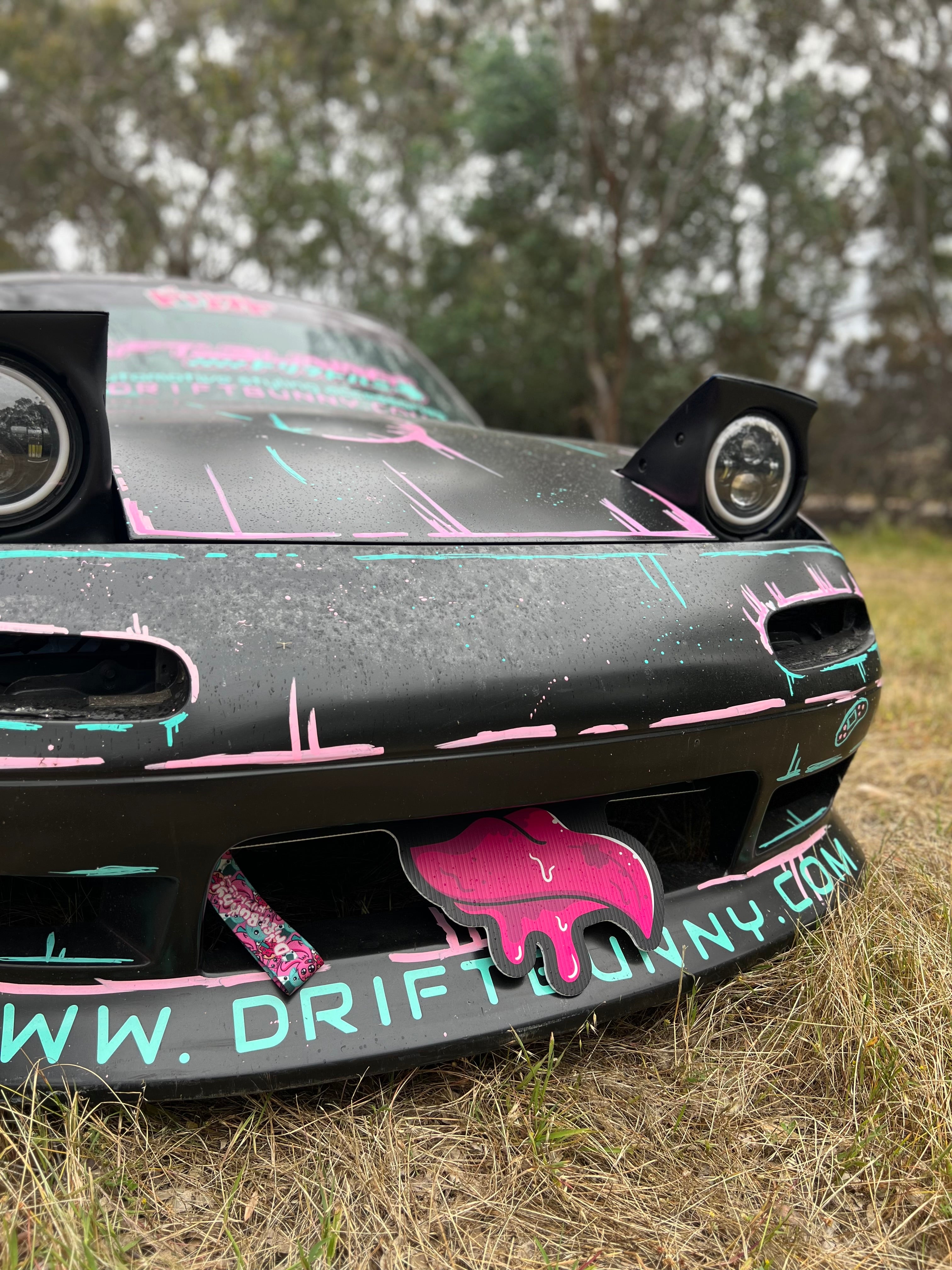 Approx 600mm wide can be cut but designed to allow for fitment with mx5 tow points. Cut to make universal to any car! do not drive with these on as they will restrict airflow - decorative only! comes folded for transport but you can unfold and tape straight as they are corflute